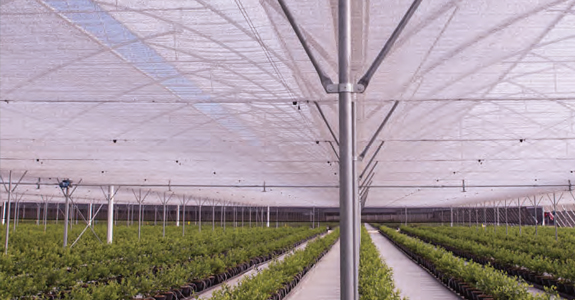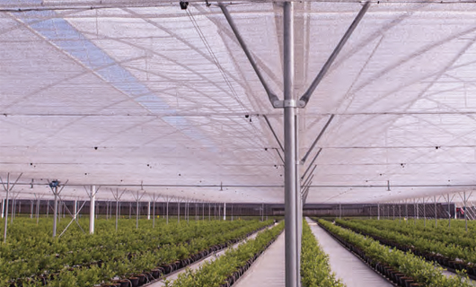 In extremely hot areas, the heat stress on the plants cannot be avoided by using just plain shade nets, for which we have developed a new method of coating the tapes with aluminum to reflect maximum sunlight and decrease the heat inside the greenhouse up to 4oC and processed to ensure high mechanical and optical properties. Our method of adhesion of the aluminum will not allow the coating to peel off over years of outdoor exposure. UV stabilised screens can be made in 30% shade, 50% shade and 70 % shade and widths upto 6.2 meter in a single width.